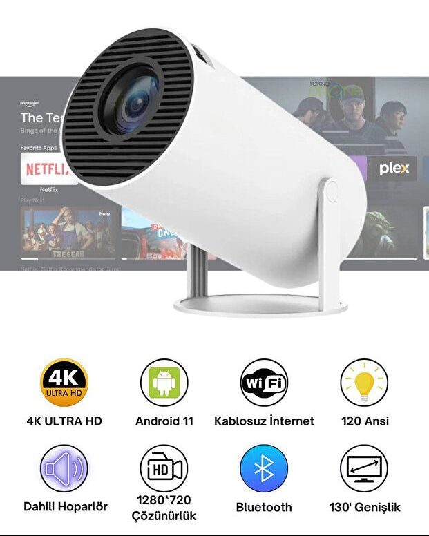Ambiya - Taşınabilir Sinema Projektörü 4K Ultra HD